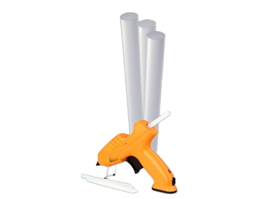Adhésif thermofusible en barres, universel et transparent, spécialement conçu pour un collage rapide et efficace à l’aide d’un système d’application avec pistolets à injection.